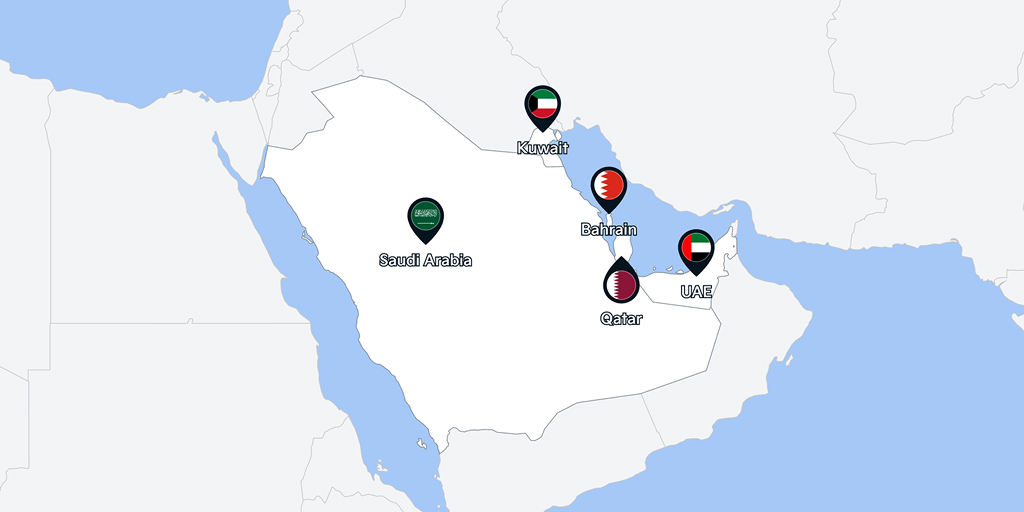 Saudi Arabia, the UAE, Qatar, Kuwait, and Bahrain.